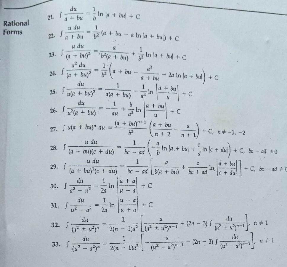 We use formula 31 from the table of integration shown in the attachment.