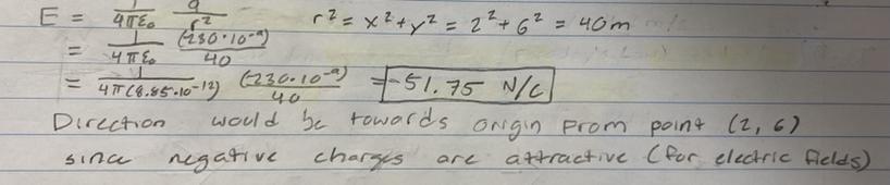 an electric charge (Q=-230nc) located at origin generate an electric field at point P located at (2 , 6)m(meter) find the electr