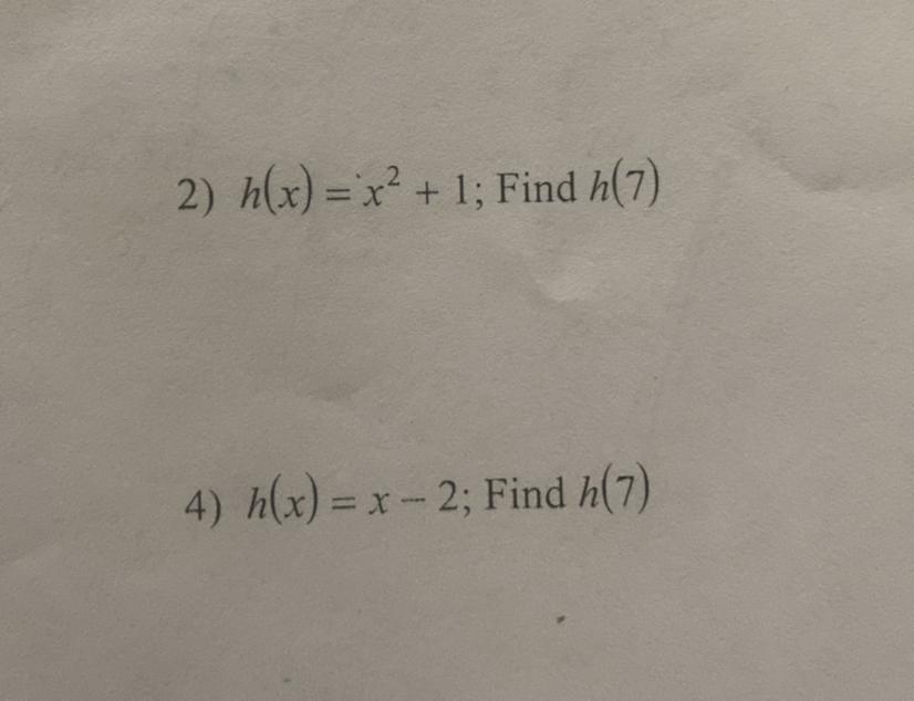 <h2>h(7) = 50.</h2><h2 /><h2>h(7) = 5.</h2>