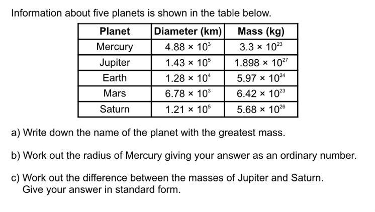 Greatest Mass:-Jupiter
