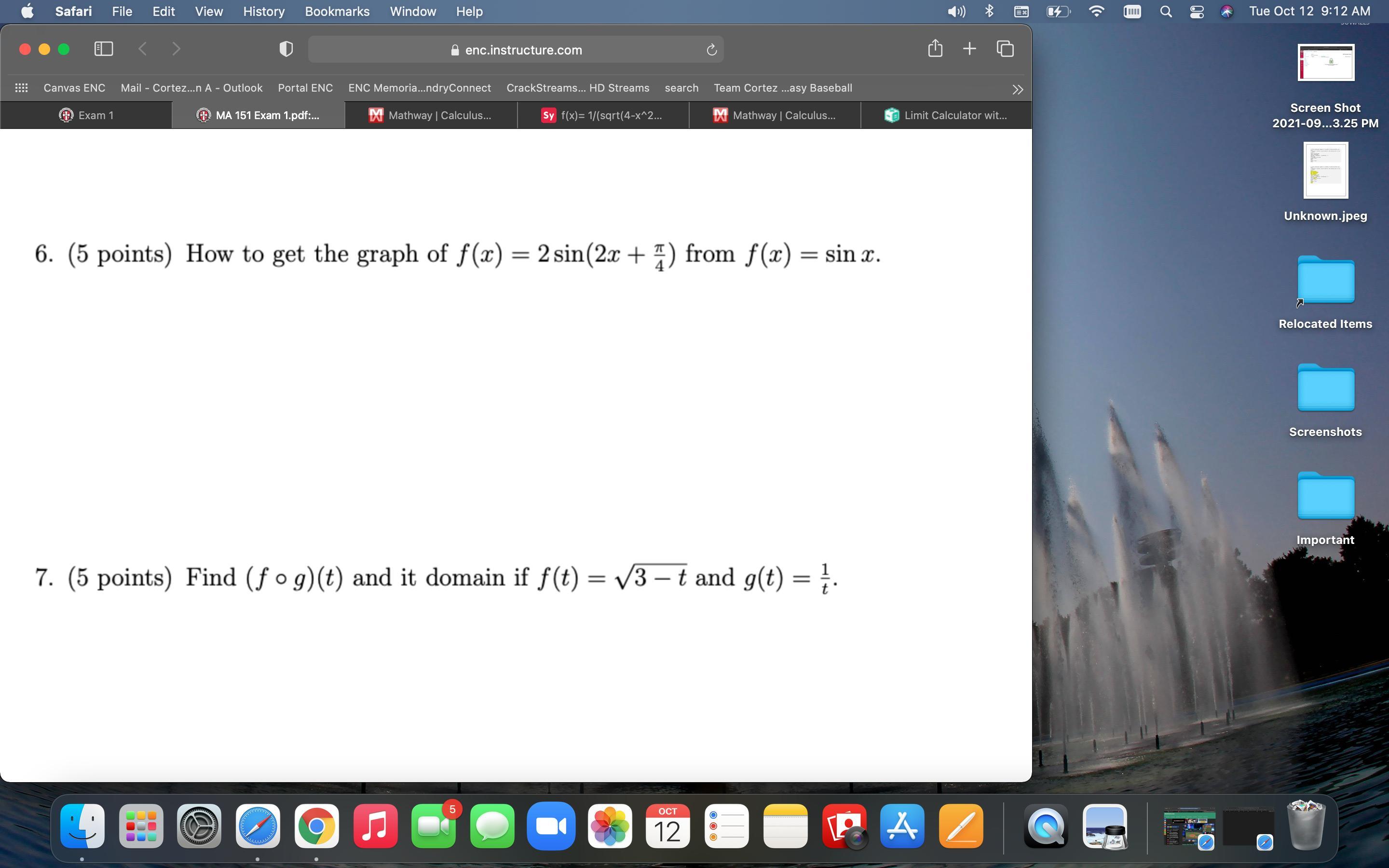 Given the equation for height as a function of time is h(t) = -16t2 + 1,296