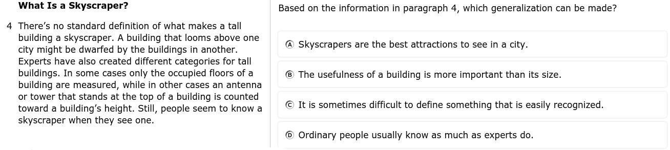 So the Answer is C; The whole paragraph is talking about how there isn't one specific definition and the last sentence mentions how people just know when they see one.