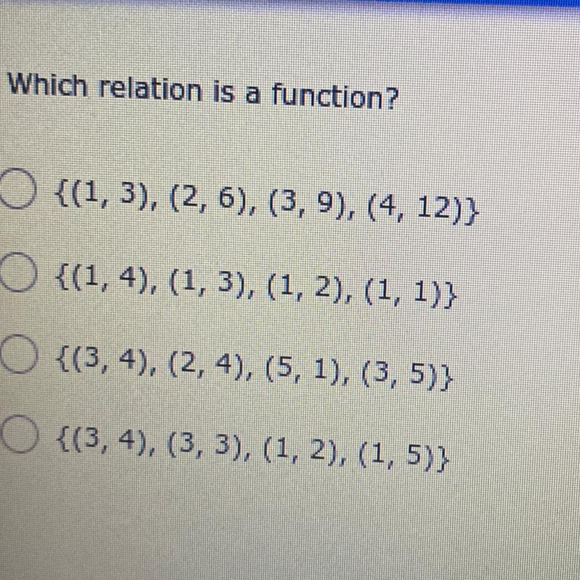 A) {(1, 3), (2, 6), (3, 9), (4, 12)} - Yes, all input-outputs are unique