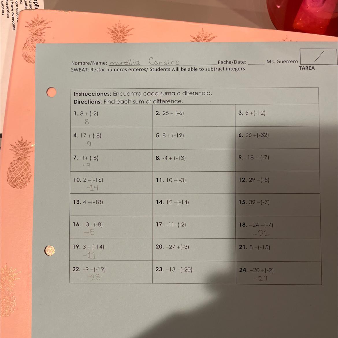 Number 10 is wrong it is supposed to be 18