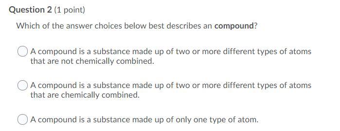 Compound is a pure substance which is made from atoms of different elements combined together in a fixed ratio by mass.It can be decomposed into simpler constituents using chemical reactions. The elements lose their individual chemical properties. The elements can not be separated using physical means.