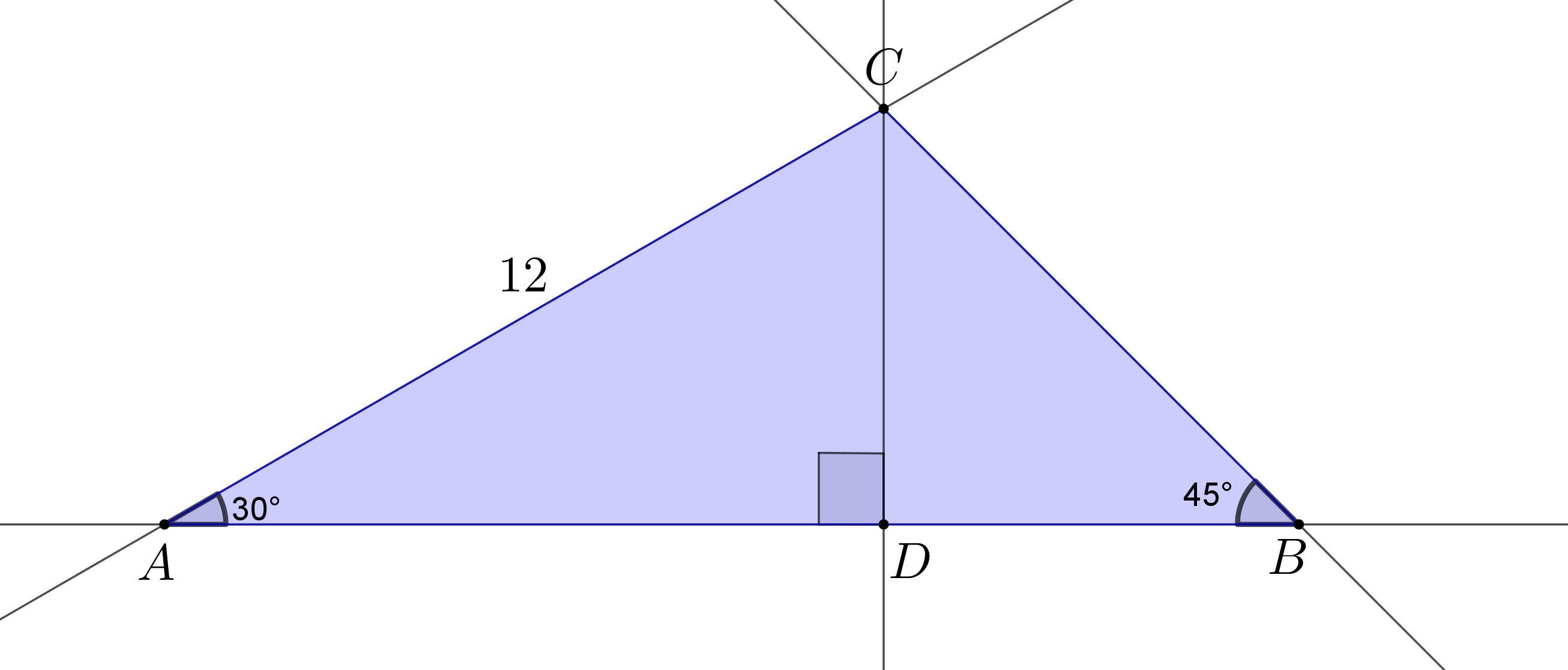 notice, by drawing the altitude from C, we end up with a 30-60-90 and a 45-45-90 triangle, thus we use the 30-60-90 and 45-45-90 rules as you see there.