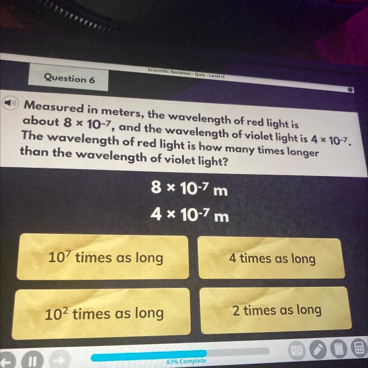 The wavelength of red light is 2 times longer than the wavelength of violet light.