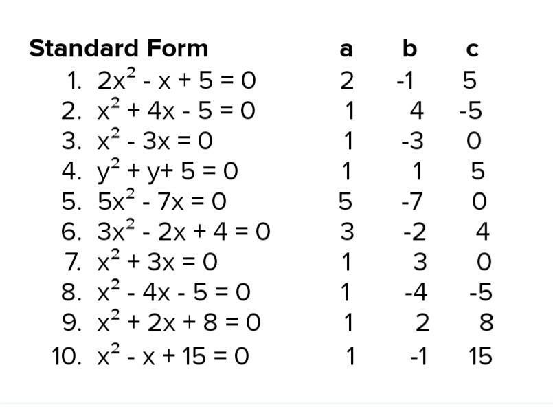 <em>ax</em><em>²</em><em> </em><em>+</em><em> </em><em>bx</em><em> </em><em>+</em><em> </em><em>c</em><em> </em><em>=</em><em> </em><em>0</em>