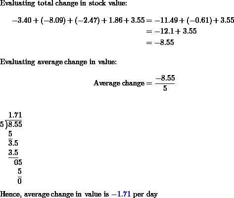 patrick recorded the daily changes of the value of a stock in dollars: -3.40, -8.09, -2.46, 1.86, and 3.55 what was the average daily change in the stock's value in dollars?