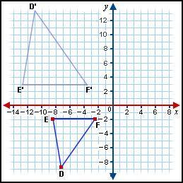 (Look at the image below.) Suppose D’E’F’ is a transformation of DEF. Which of the following results is true about triangle D’E’
