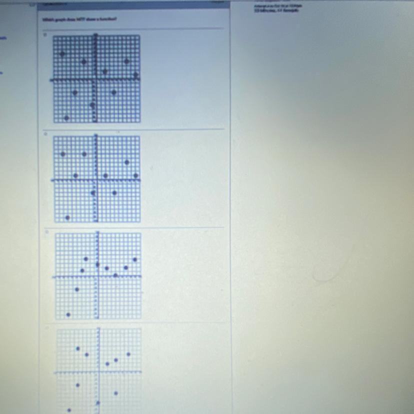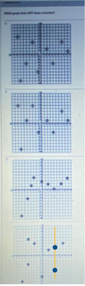 Attached is a screenshot where it shows why the last graph is not a function. I didn't have to do the VLT on all of the graphs because I could easily see that the other graphs are functions. The last graph shows a yellow line that has two points in it. Therefore, the last graph is not a function.