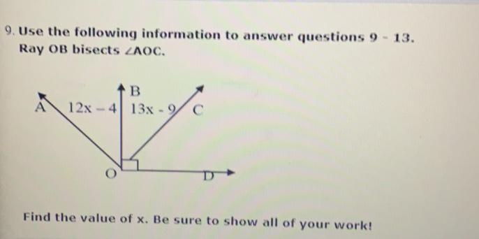 13x - 9 = 12x - 4