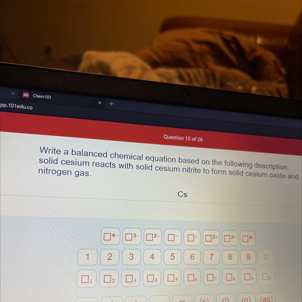 <h3>Cs + CsNO₂ —> Cs₂O + N₂</h3>