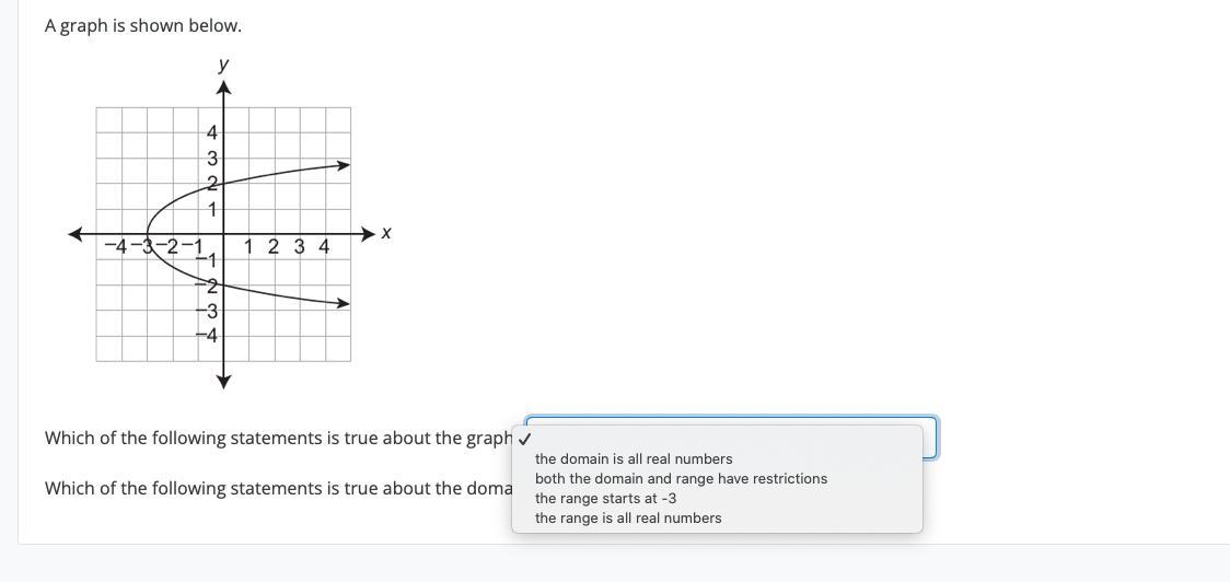 In the case of this graph, we see the parabola starts at x = -3, and continues on forever.