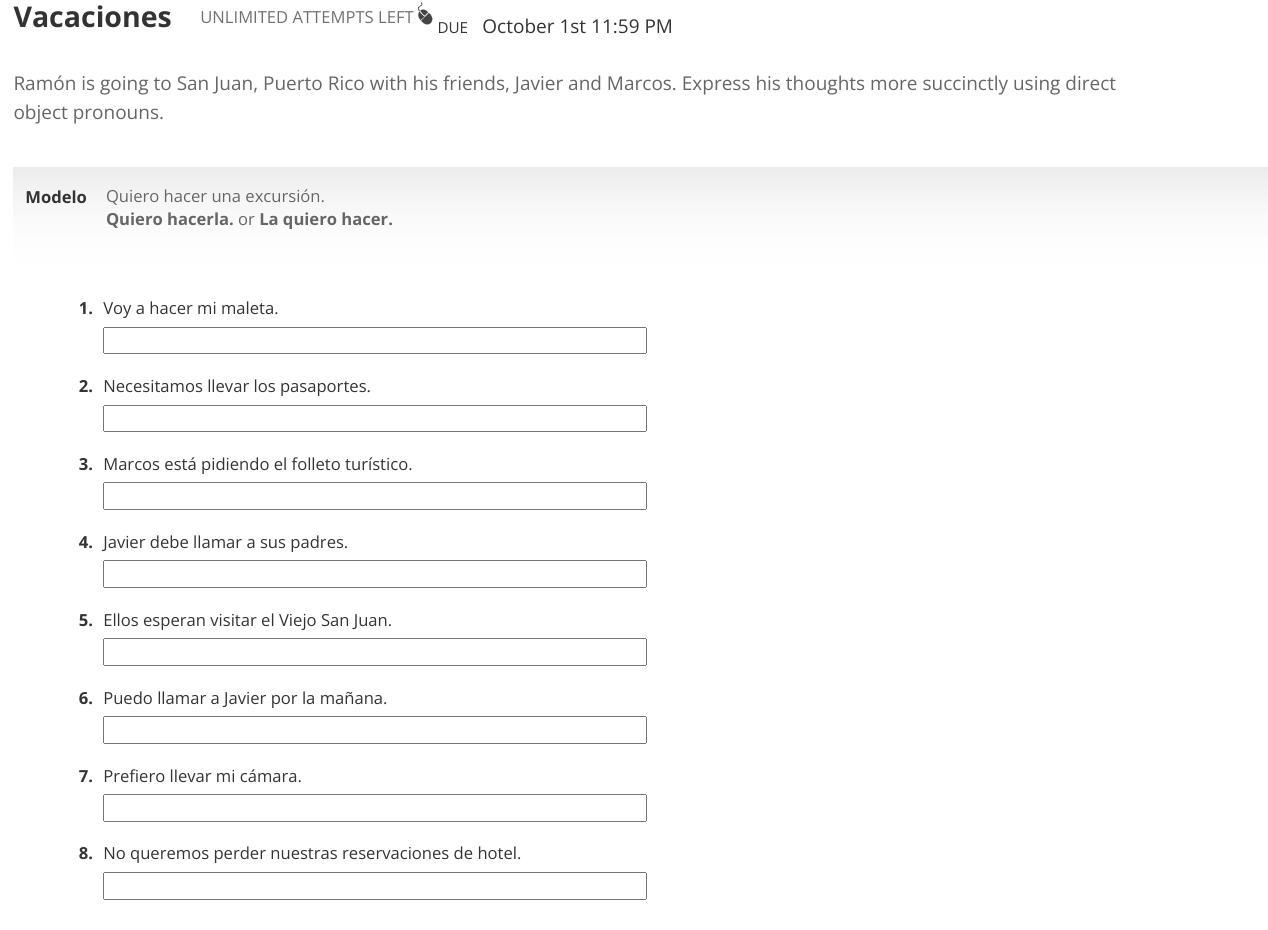 Question 1 with 10 blanks: Martín no puede (1) <u>pagar en efectivo</u>; por eso saca un (2) <u>cheque</u>. Martín primero llena el cheque con la fecha, los números y el nombre de la compañía de luz y luego lo (3) <u>firma</u> con su nombre y apellido. Pone el cheque en el (4) <u>sobre</u> y lo cierra. Luego escribe la (5) <u>dirección</u> de la compañía de luz y pone una (6) <u>estampilla</u> en el sobre. Después, Martín sale de su casa, camina una (7) <u>cuadra</u> hasta la (8) <u>esquina</u> y (9) <u>echa</u> el sobre al (10) <u>buzón</u>.
