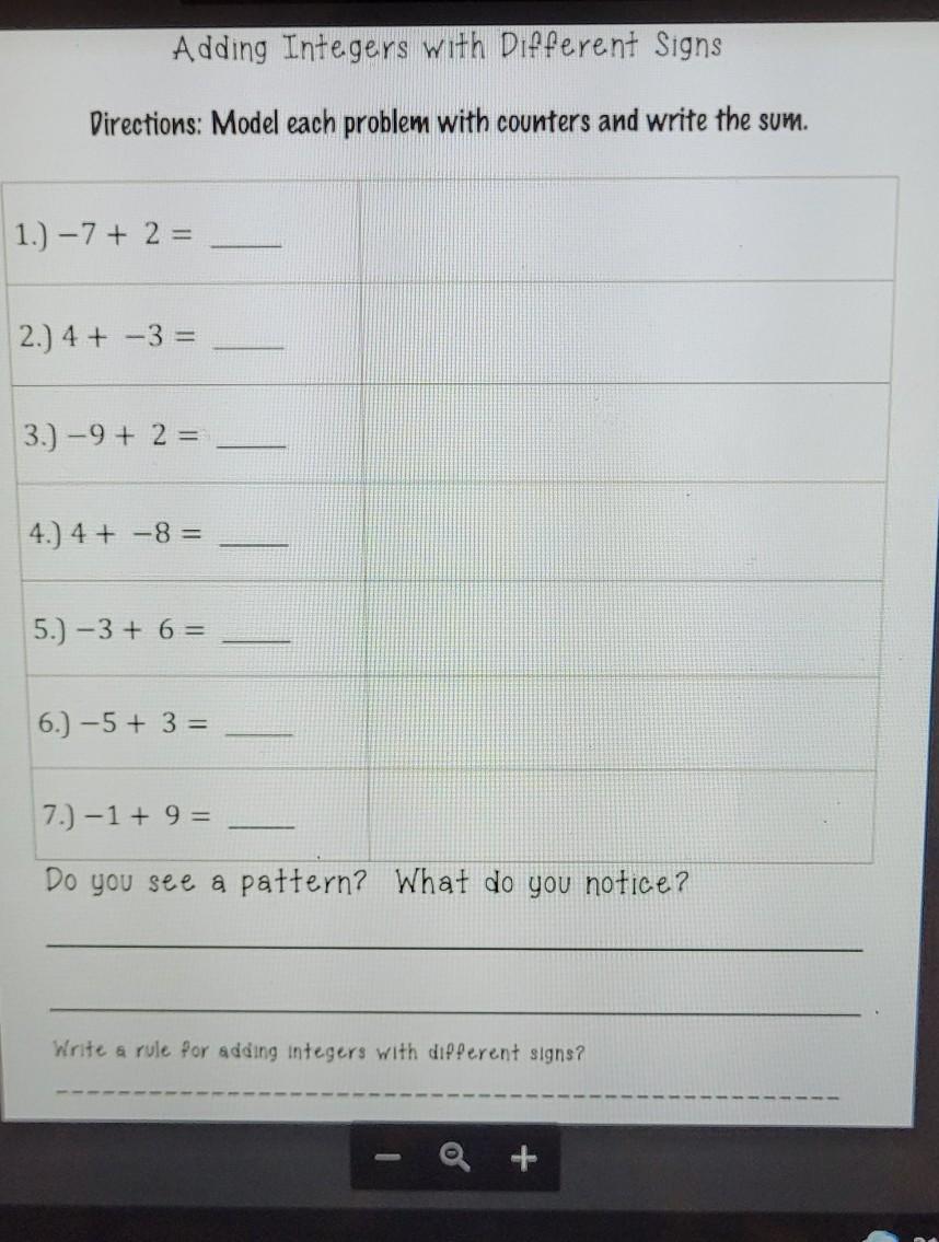 I noticed that when you are adding a larger positive number with a smaller negative number the answer will be positive; and if you are adding a larger negative number with a smaller positive number, the answer will be negative.