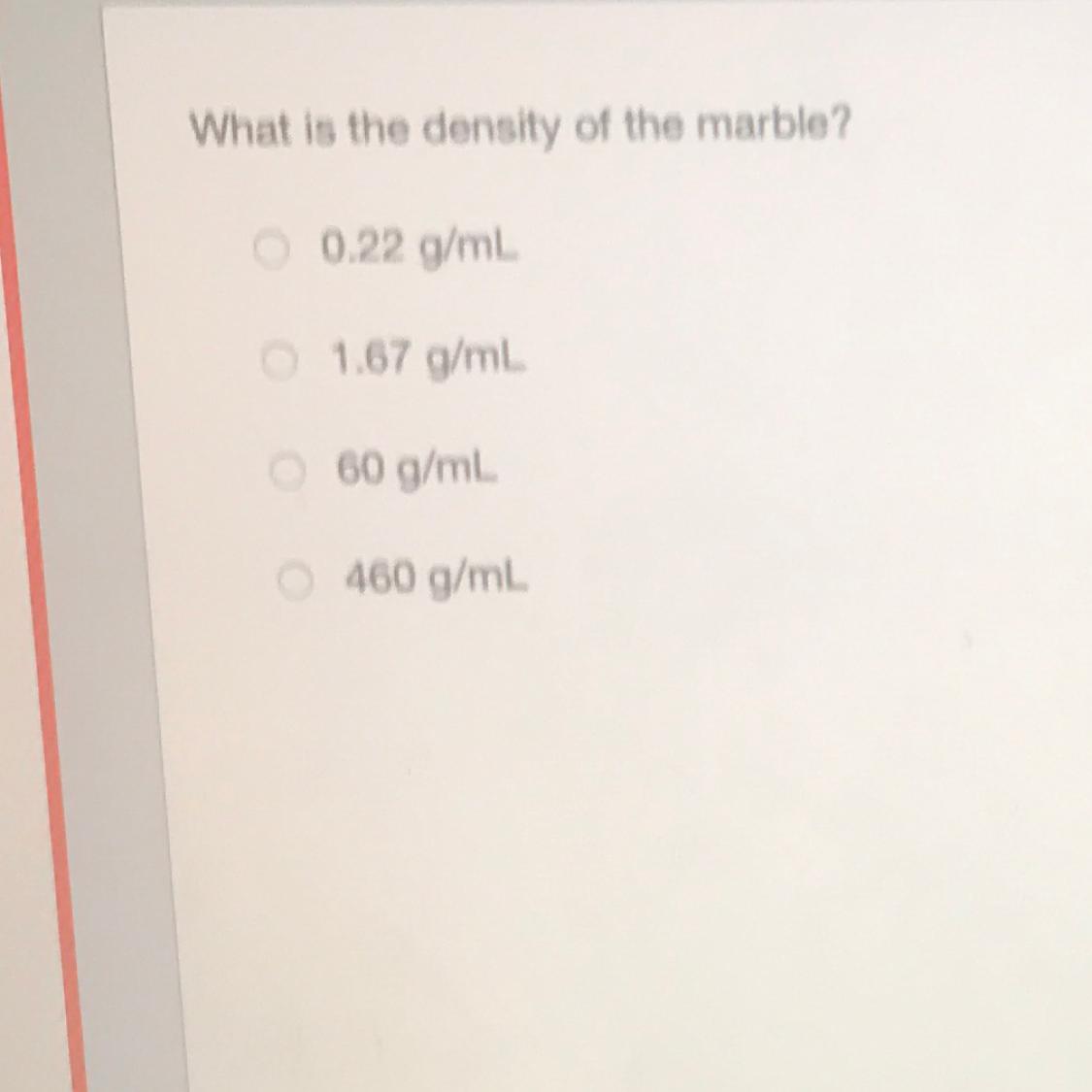 option B is the correct answer, 1.67g/mL.