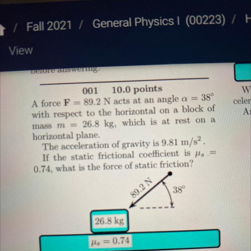 Fs = 89.2cos(38) = 70.291 N
