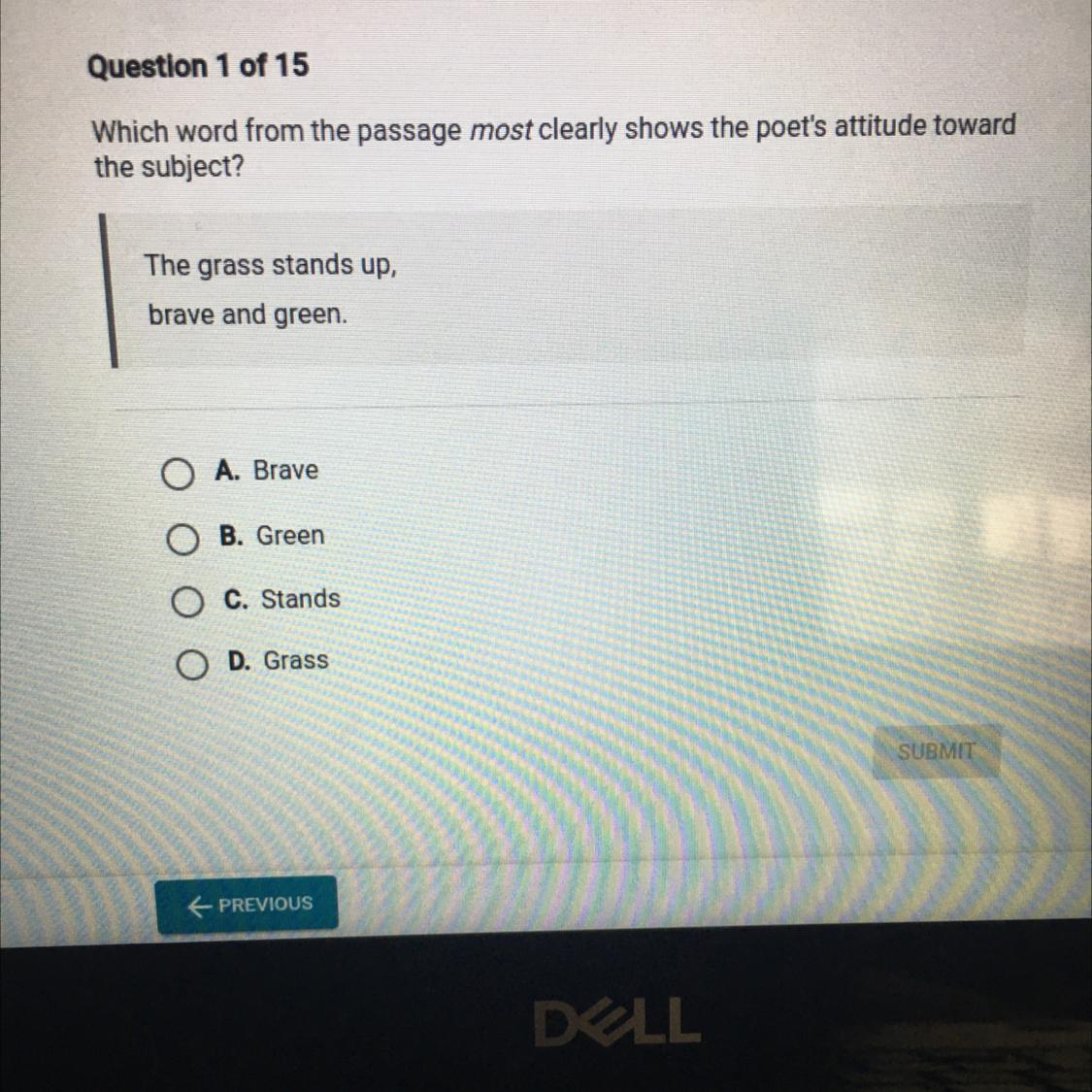 The word that most clearly shows the poet's attitude is BRAVE