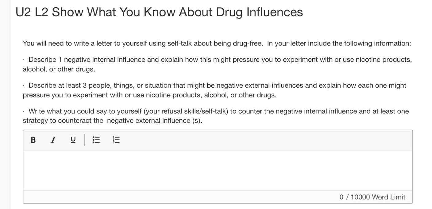1.) Internal means inside. For example; it could be the feeling of wanting to be cool, or stand out in a crowd of friends. Not wanting to stand up for yourself if faced with peer pressure, because the fear of being rejected/shamed. A good one would probably be having a low self-esteem, depression, not caring about health or caring to think about consequences.