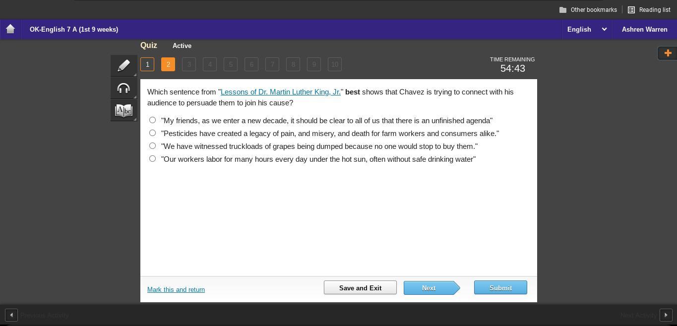 A "the right to ask its question after the page / came up flush against its face." ( Lines 2-3)