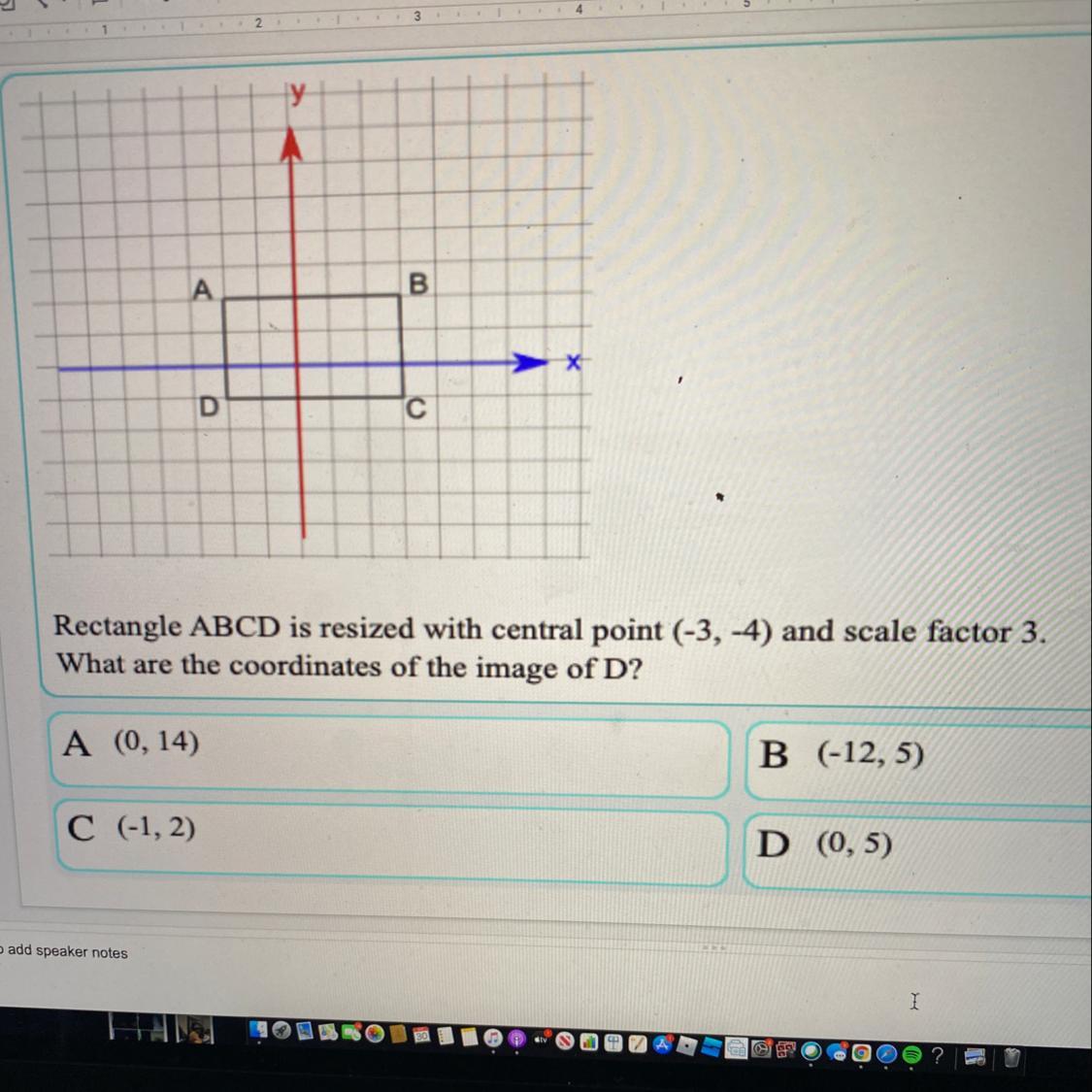 The option that gives the coordinates of the point <em>D</em> is the option;