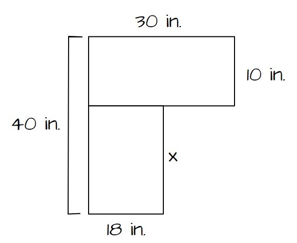 Top rectangle: (10)(30) = 300