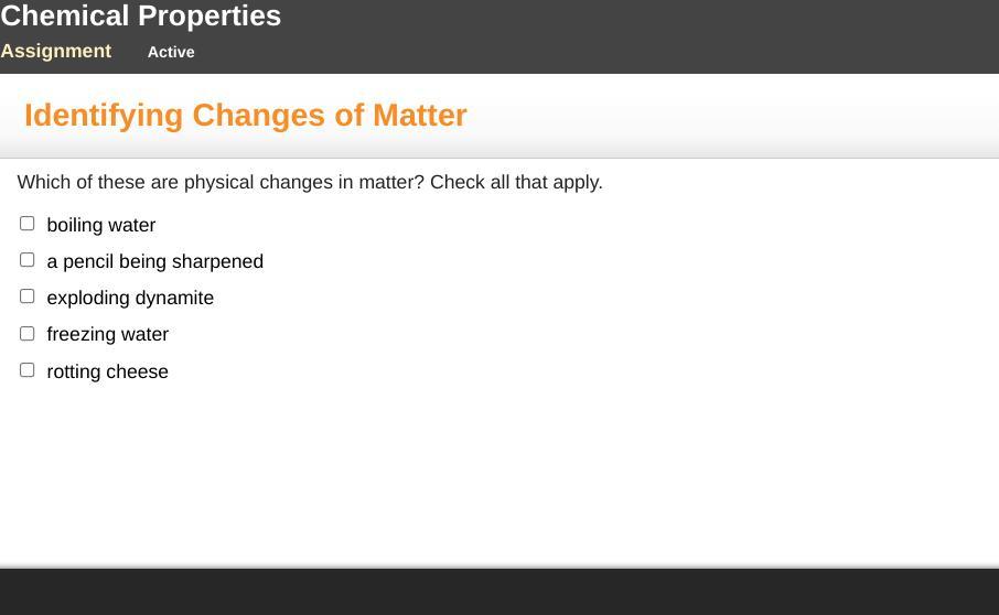 For example, shape, size, mass, volume, density, boiling point, etc of a substance are all physical properties.