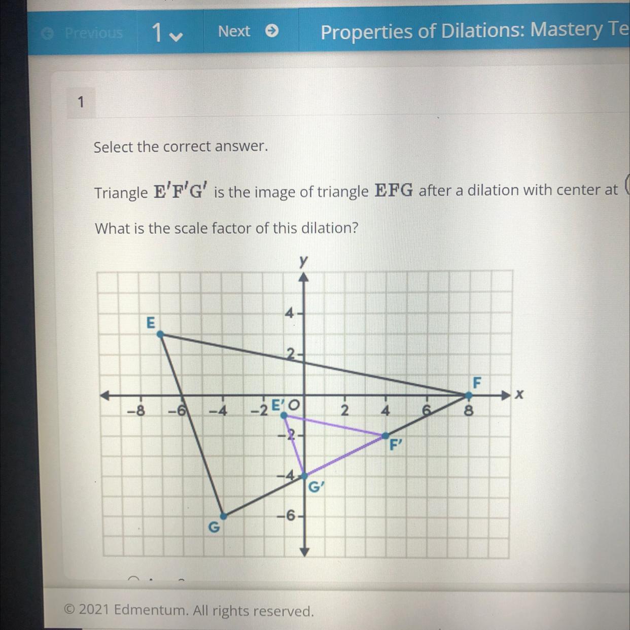 The starting point each time is (2,-3) which is the center of dilation. The jump from 3 to 1 is "times 1/3" and that's our scale factor. Every linear distance in the image is 1/3 times as long compared to the preimage.