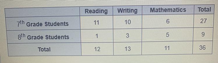 ading, writing, and mathematics sections. Which of these statements is true based on the table? A.Seventh-grade students tend to do better on the writing section compared to the mathematics and reading sections.