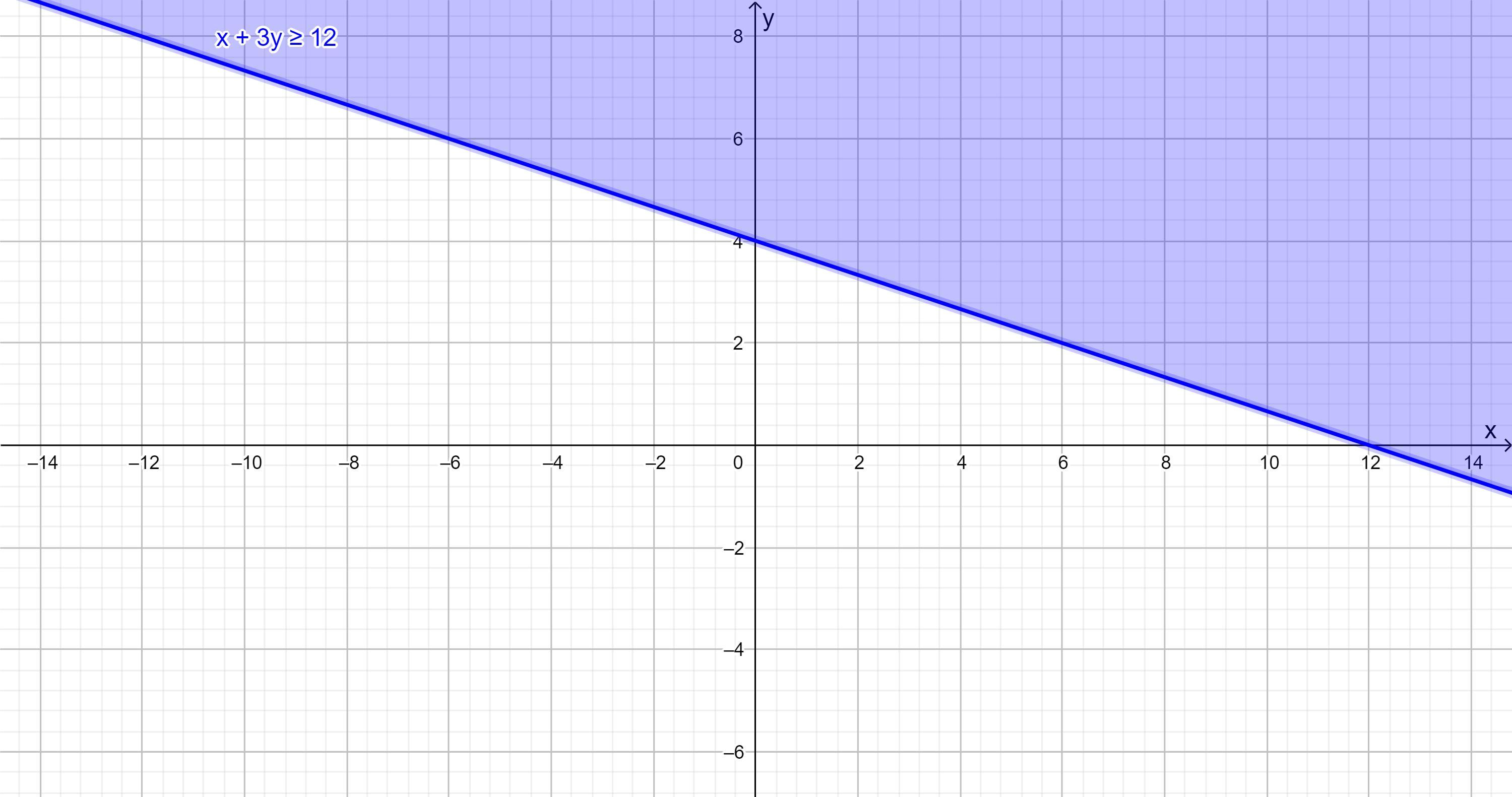 The x intercept and y intercept of the line x + 3y = 12 are (12, 0) and (0, 4) respectively.