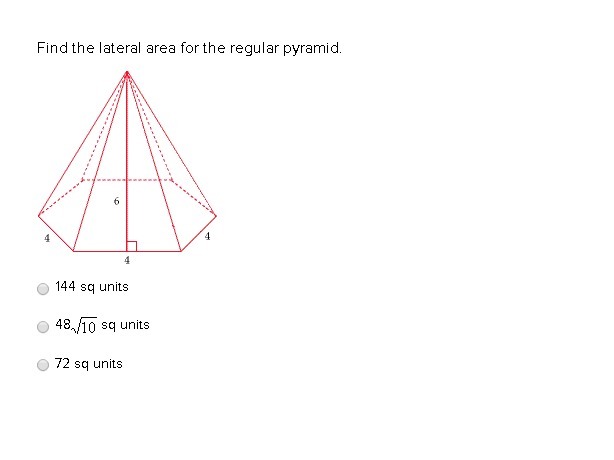 Area of one side = 1/2 x 4 x 6 = 12 square units.