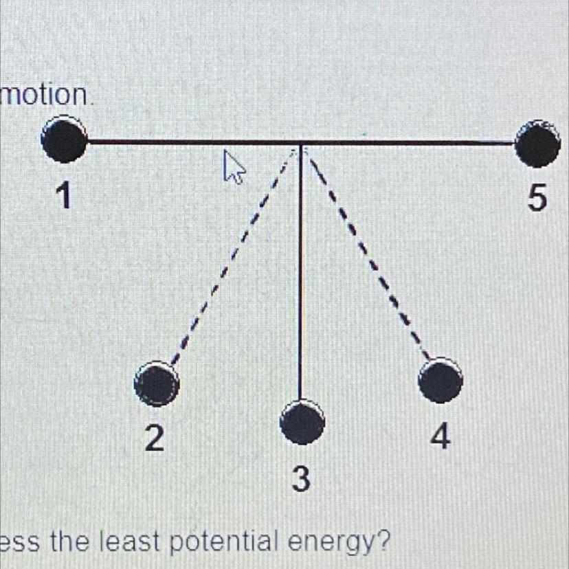 2. The pendulum has the least kinetic energy at extreme position because the velocity is zero at extreme position.