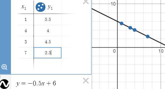 Answer:y = -0.5x + 6