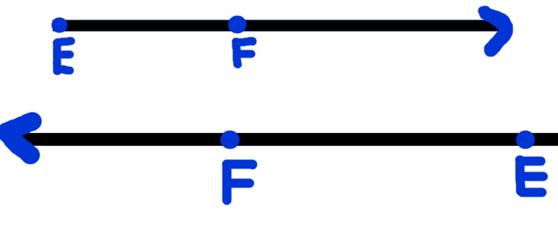 It's important to understand that our ray can go in any direction. For example, the following figure also represents ray <em>EF </em>even if it was going to the left. This is because <em>E </em>is still the endpoint and <em>F</em> still indicates the direction.