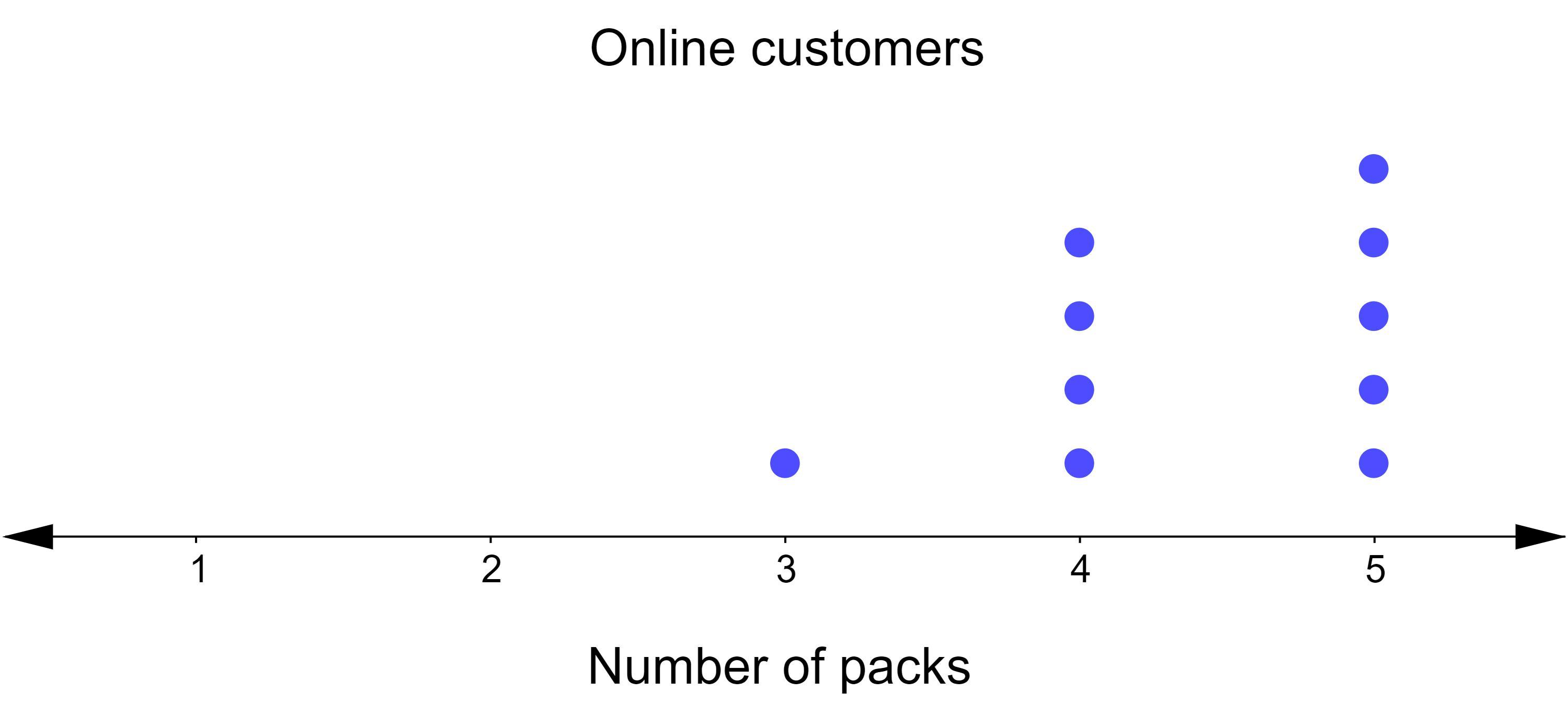 Therefore, online customers buy an average of 4 packs compared with walk-in customers, who buy an average of 2 packs.