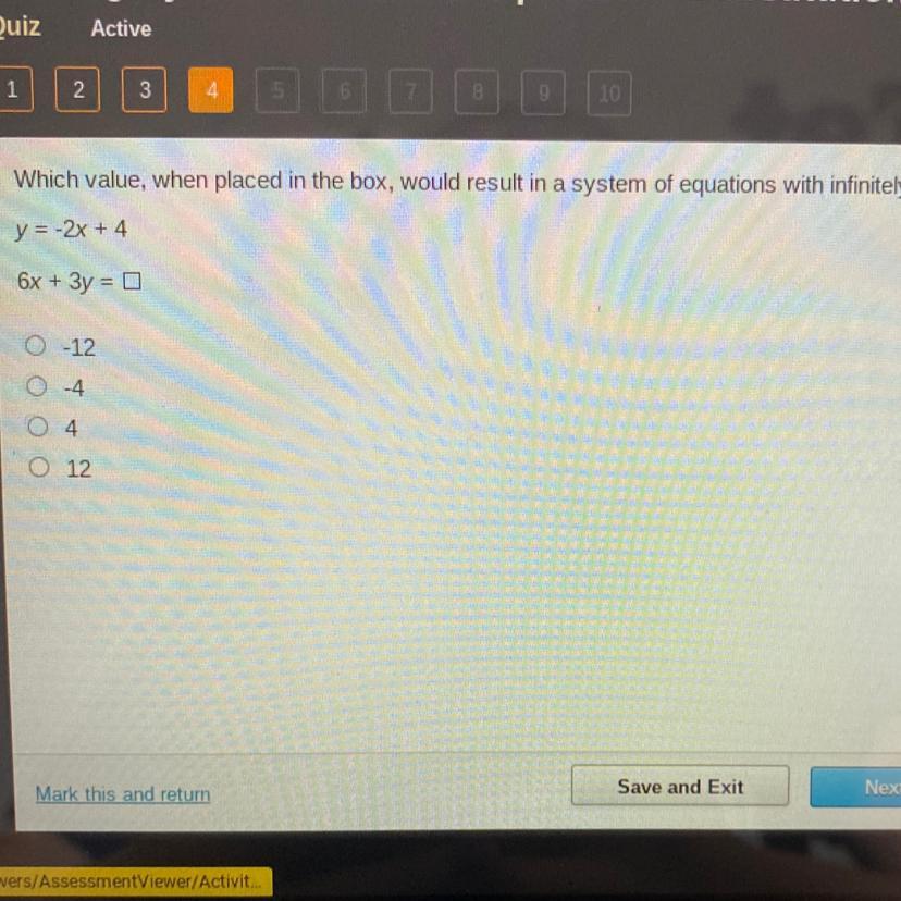 10 + 3y = - 2 ( subtract 10 from both sides )