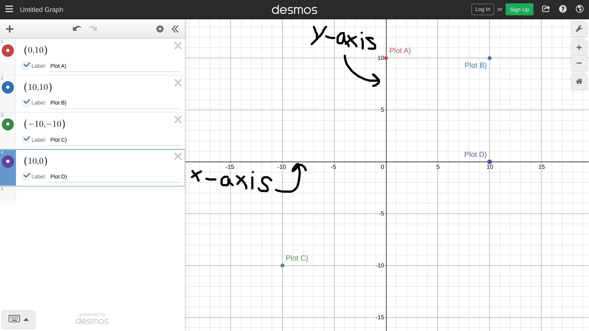 (Important:) When you are looking at coordinate points, remember that inside the parenthesis the number on the left (-10 in this case) is the x-coordinate, and the number on the right (0 in this case) is the y-coordinate.