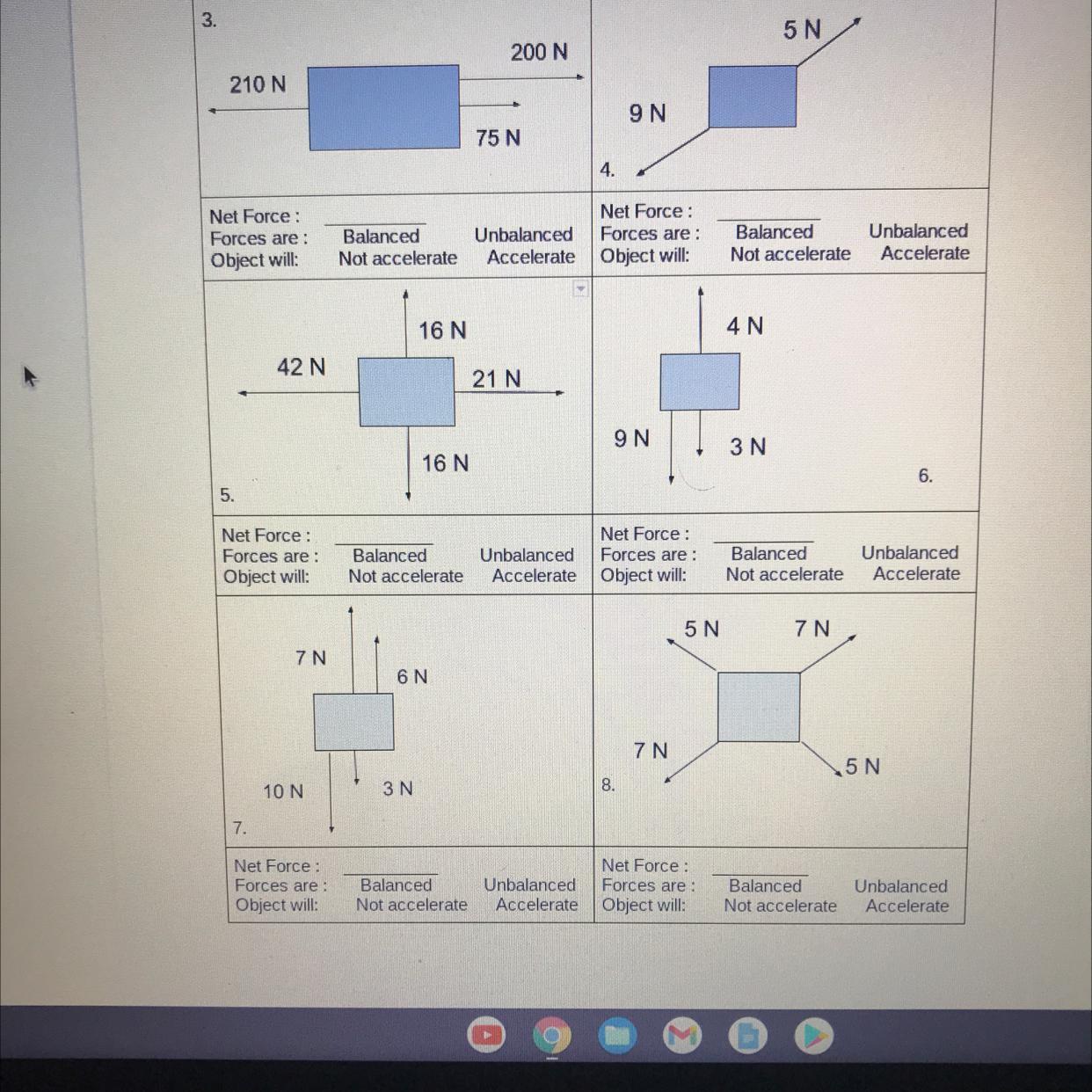 Just need to know net force, balanced or unbalanced and accelerated or not accelerated! look at picture :)