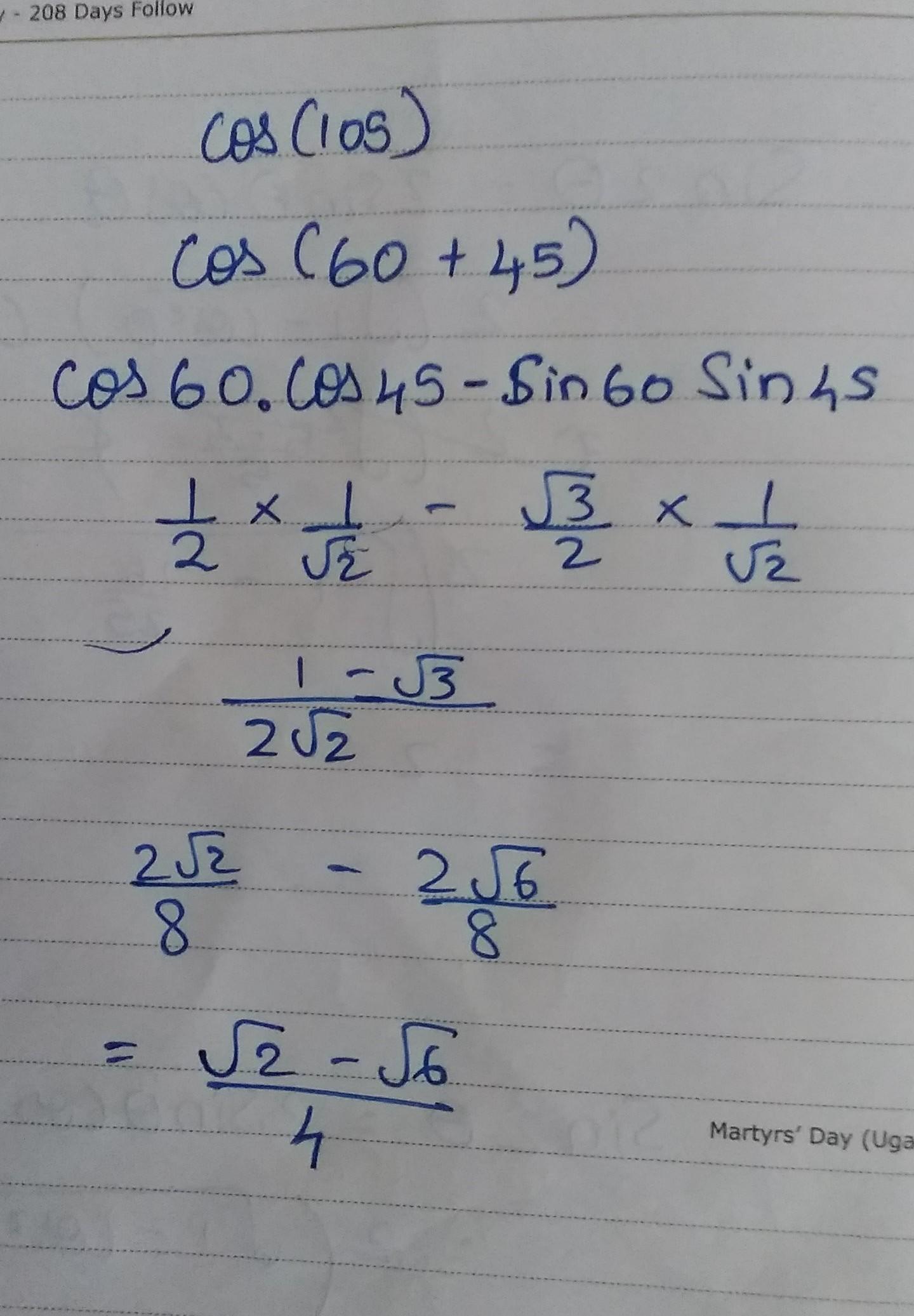 so answer is √2-√6/4