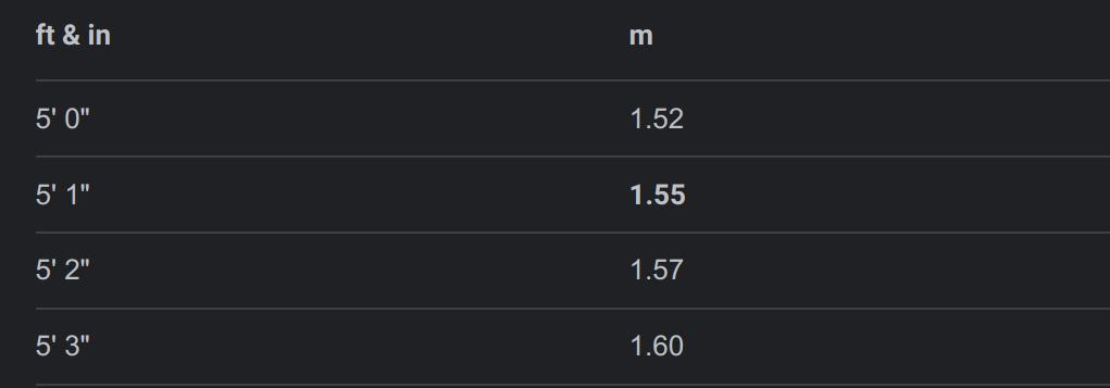 (5"1' = 154.94 cm = 1.5494 m)