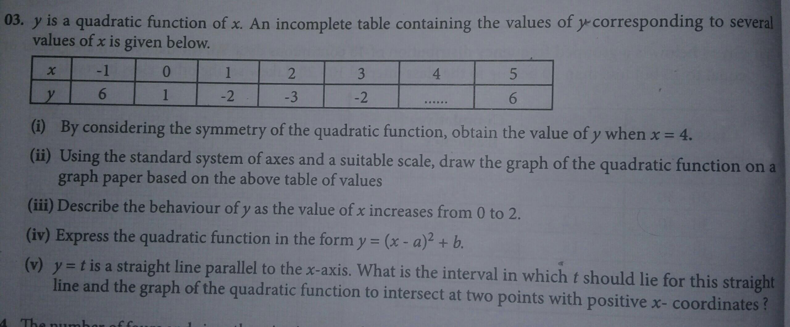 iii) as x goes from 0 to 2, y decreases parabolically from 1 to an acme at -3