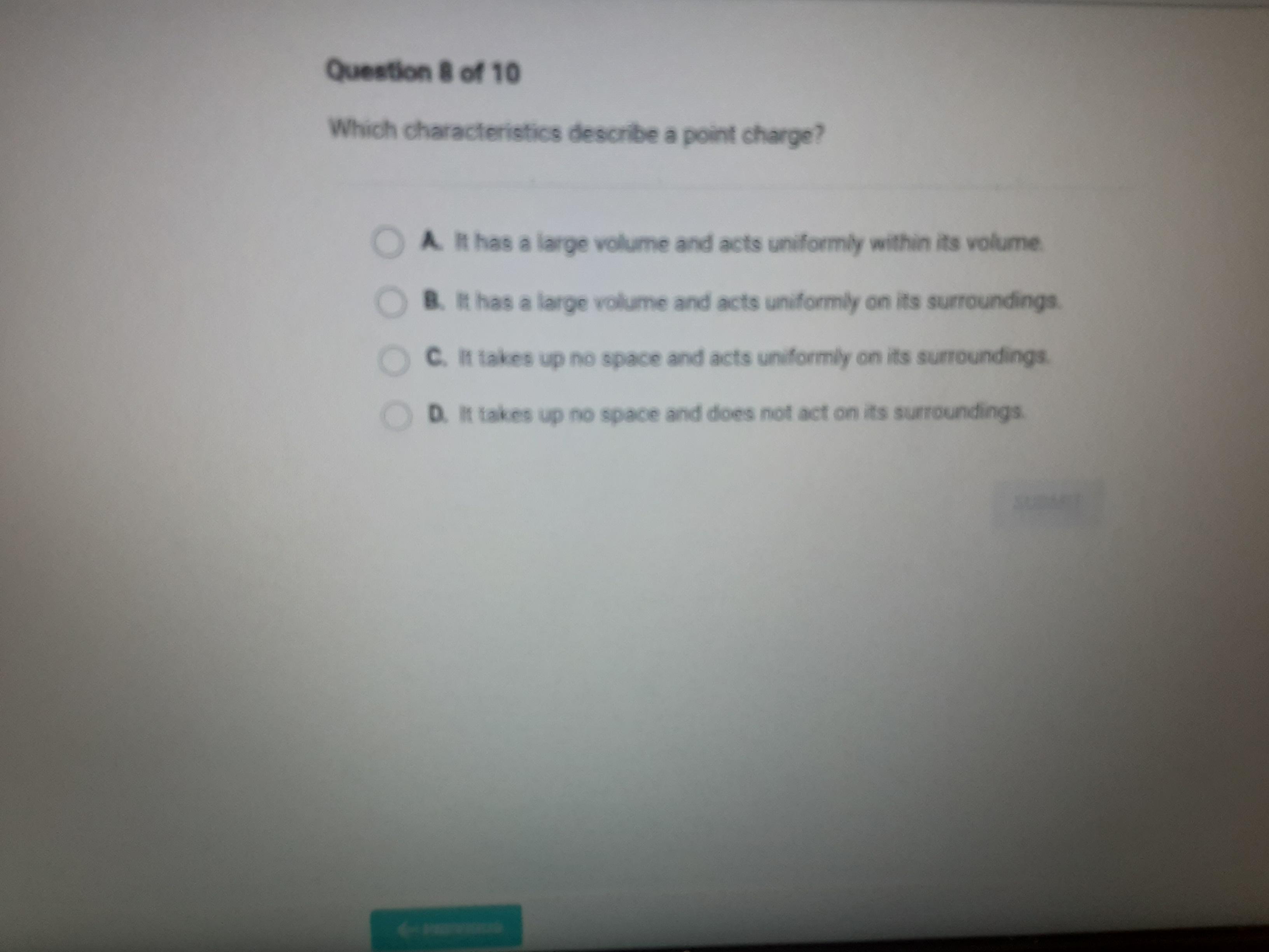 Is An object completely submerged in a fluid displaces its own volume of fluid ". This is: D