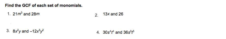 8 and -12, the gcf is 4 (you can also say -4)