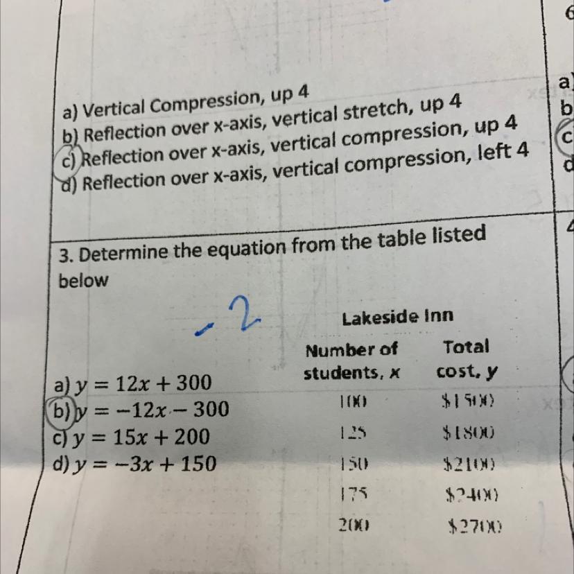 y = –12x –300 that will help you