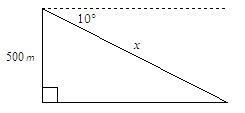 x/sin(90) = x/1 = x = 500/sin(10) = 500/0.173648178... =