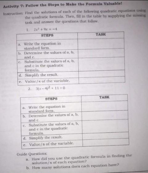 I used the Quadratic Formula bu substituting the values of a , b and c values in it.