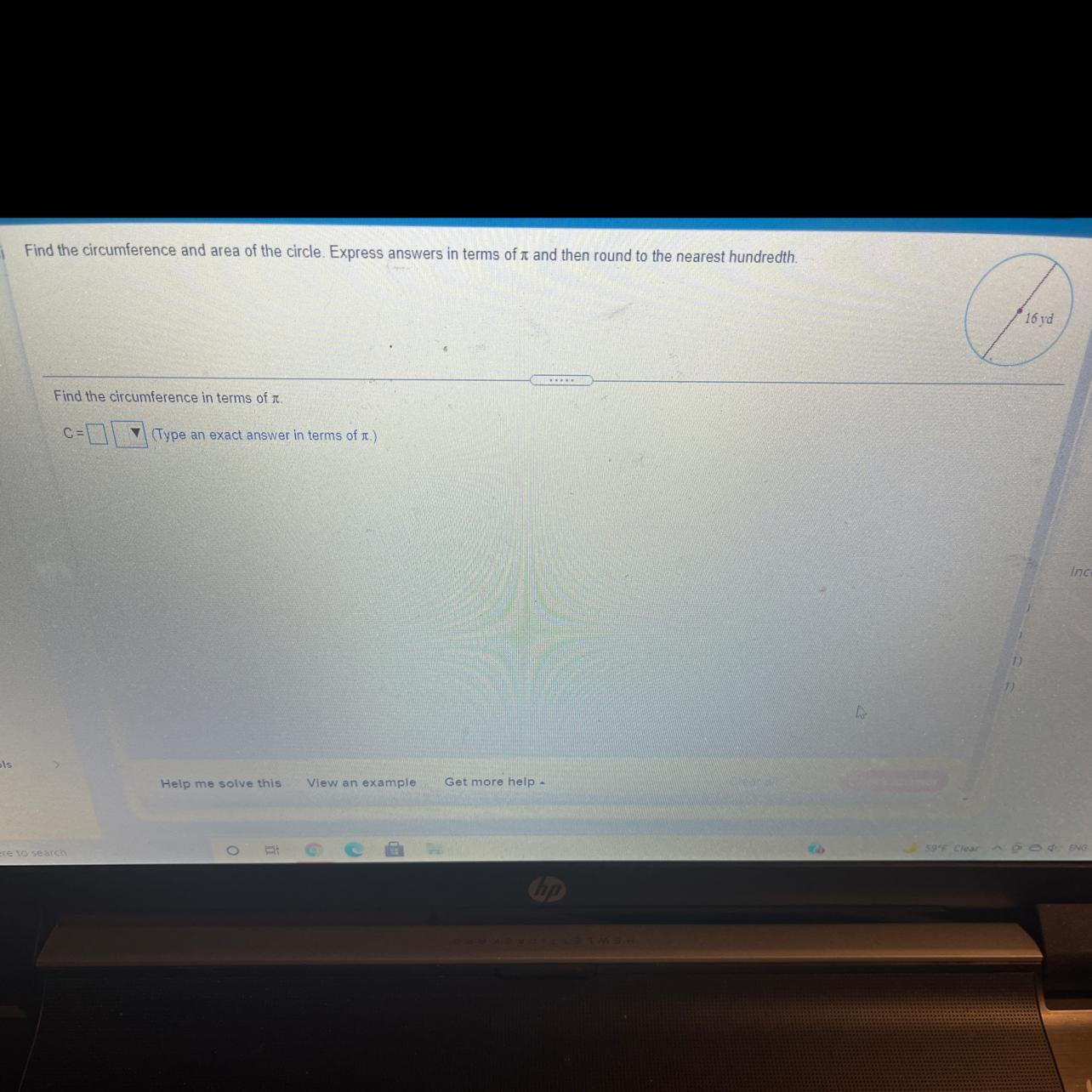 given the diameter of the circle = 16 yd