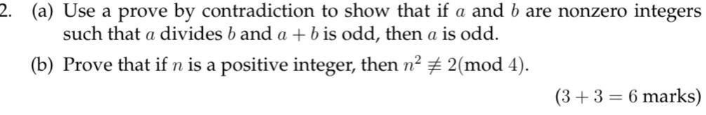 a. Assume a is even, so a = 2k for some integer k. Now let a and b be integers such that a divides b and a + b is odd.
