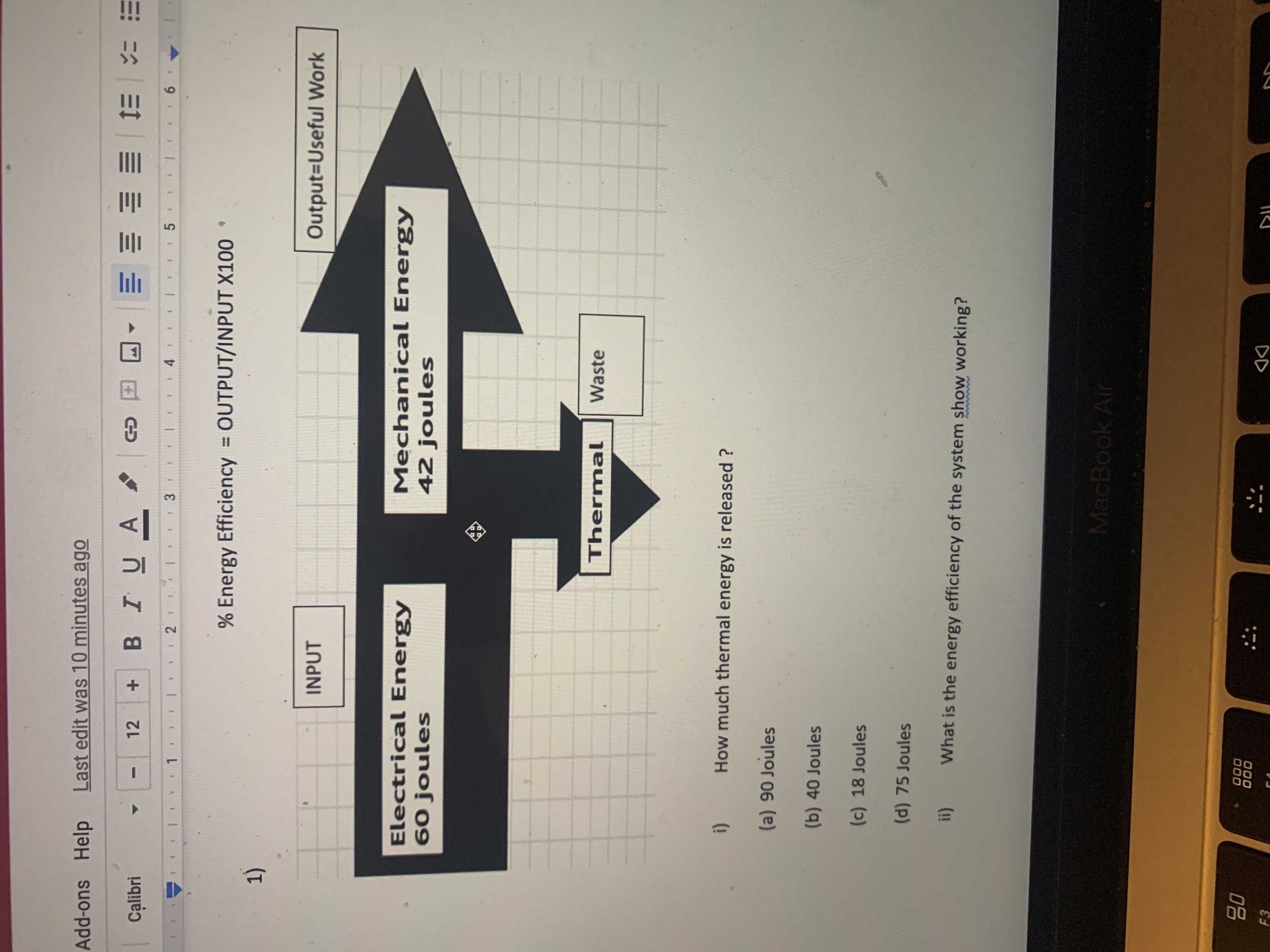 2. % energy efficiency = output/input x 100%